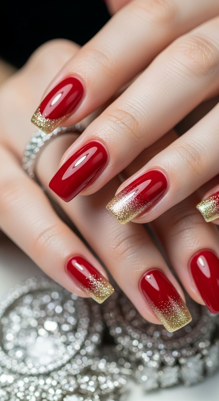 1. Classic Red with Gold Glitter Tips