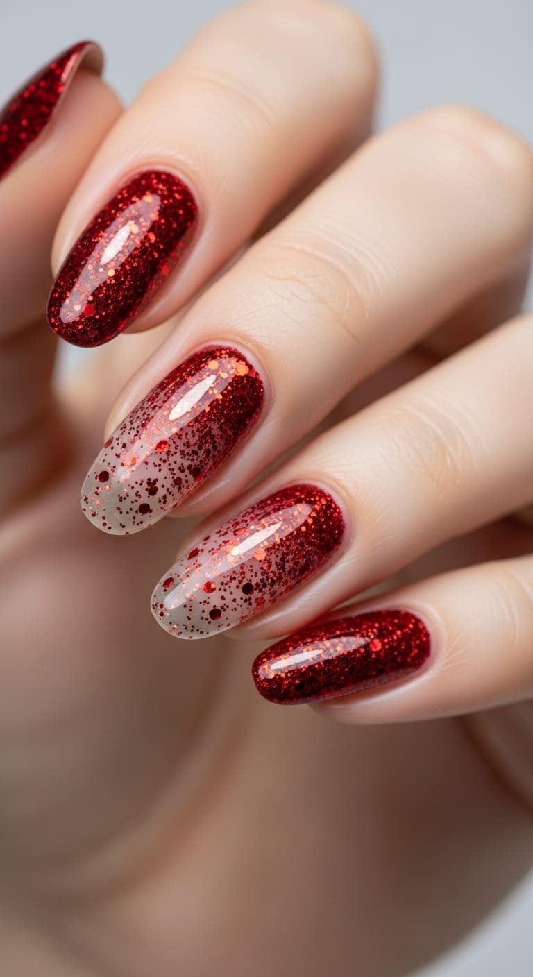 10. Red Glitter Fade from Cuticle