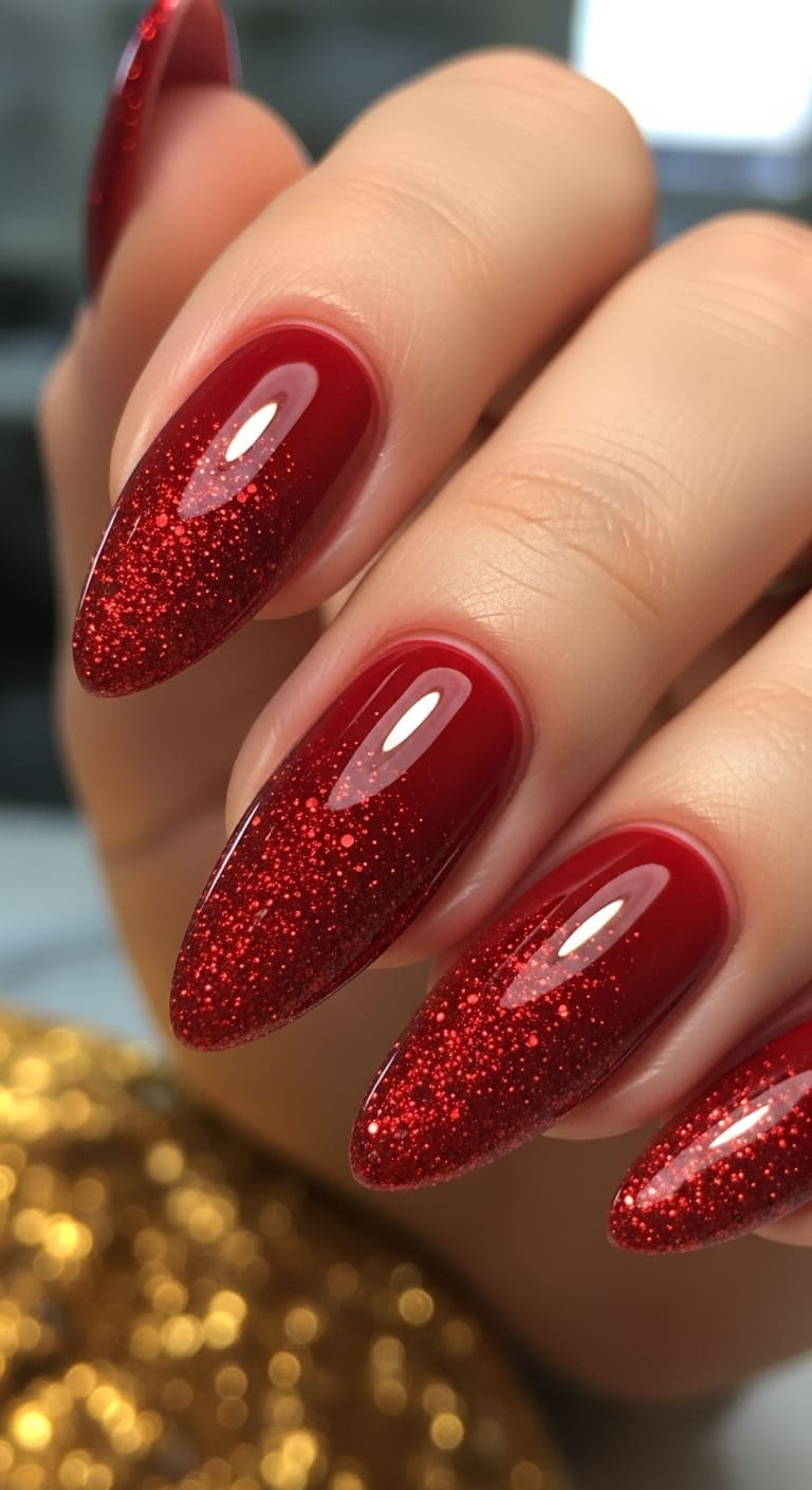 2. Ruby Red Glitter Ombré