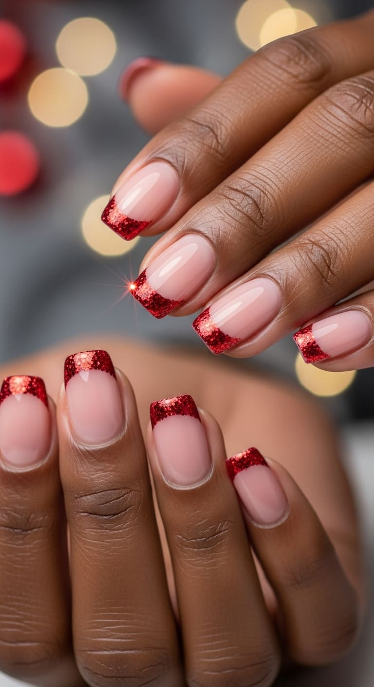 7. Red Glitter French Tips