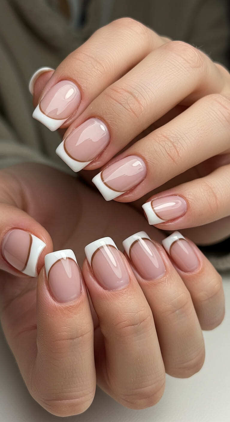 Layer a thin brown line just below a classic white tip—adds visual interest with no extra skills. Beginners will love that white masks any uneven edges in the brown. Tip: paint white first, let it dry, then add brown line on top.
