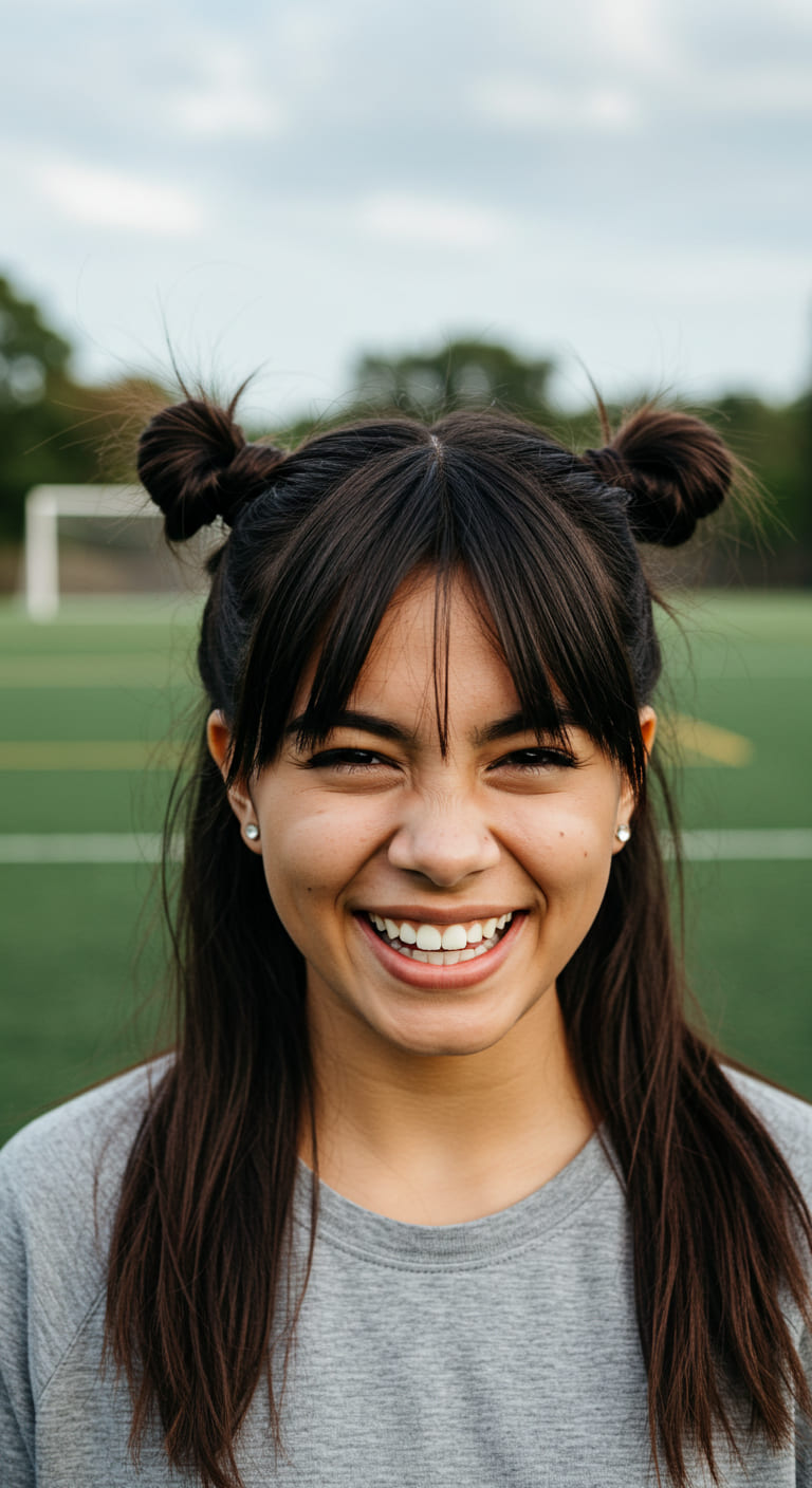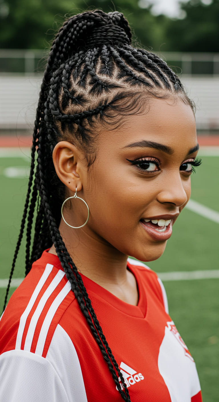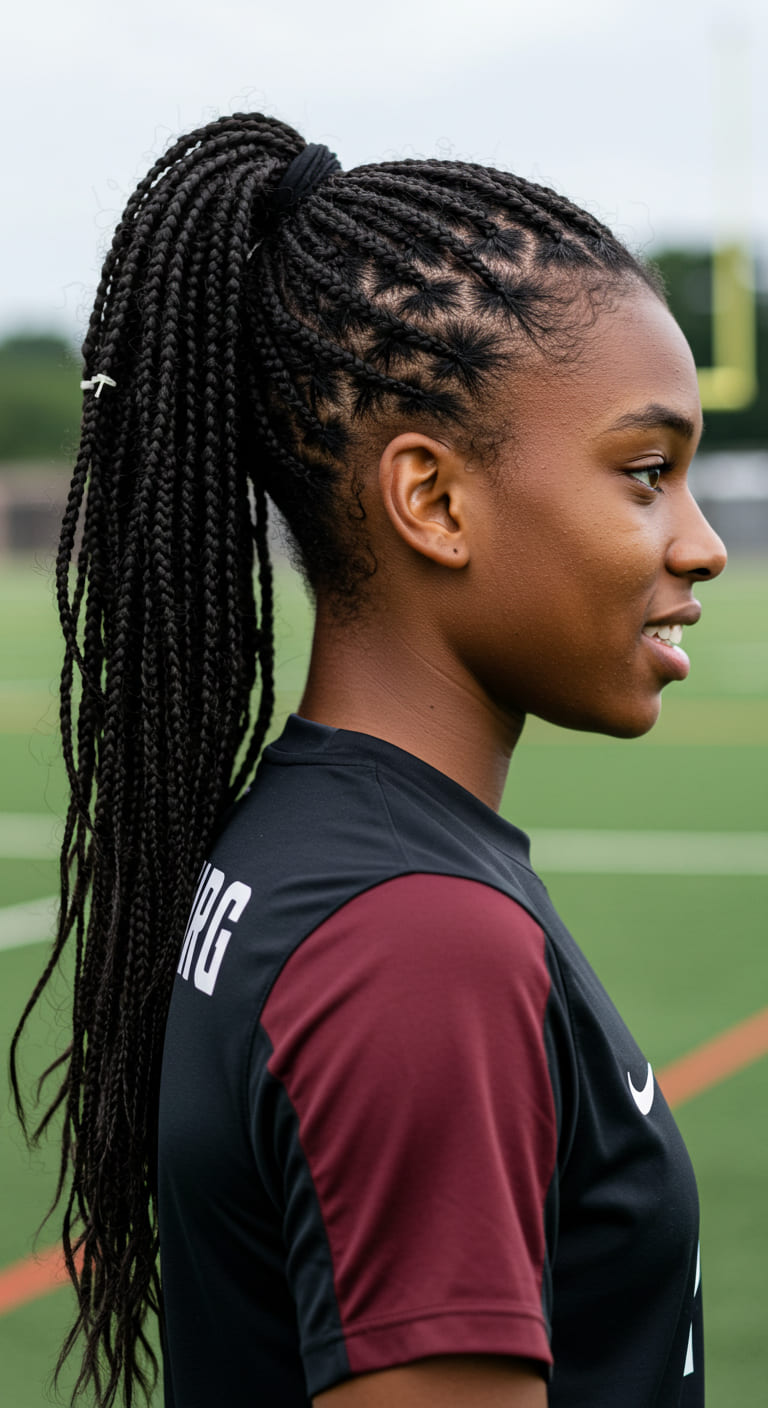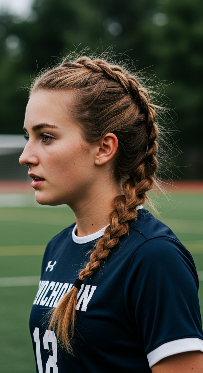 This style keeps your hair secure and tangle-free during high-intensity play. Use no-slip elastics and finish with light hairspray to keep everything in place.
