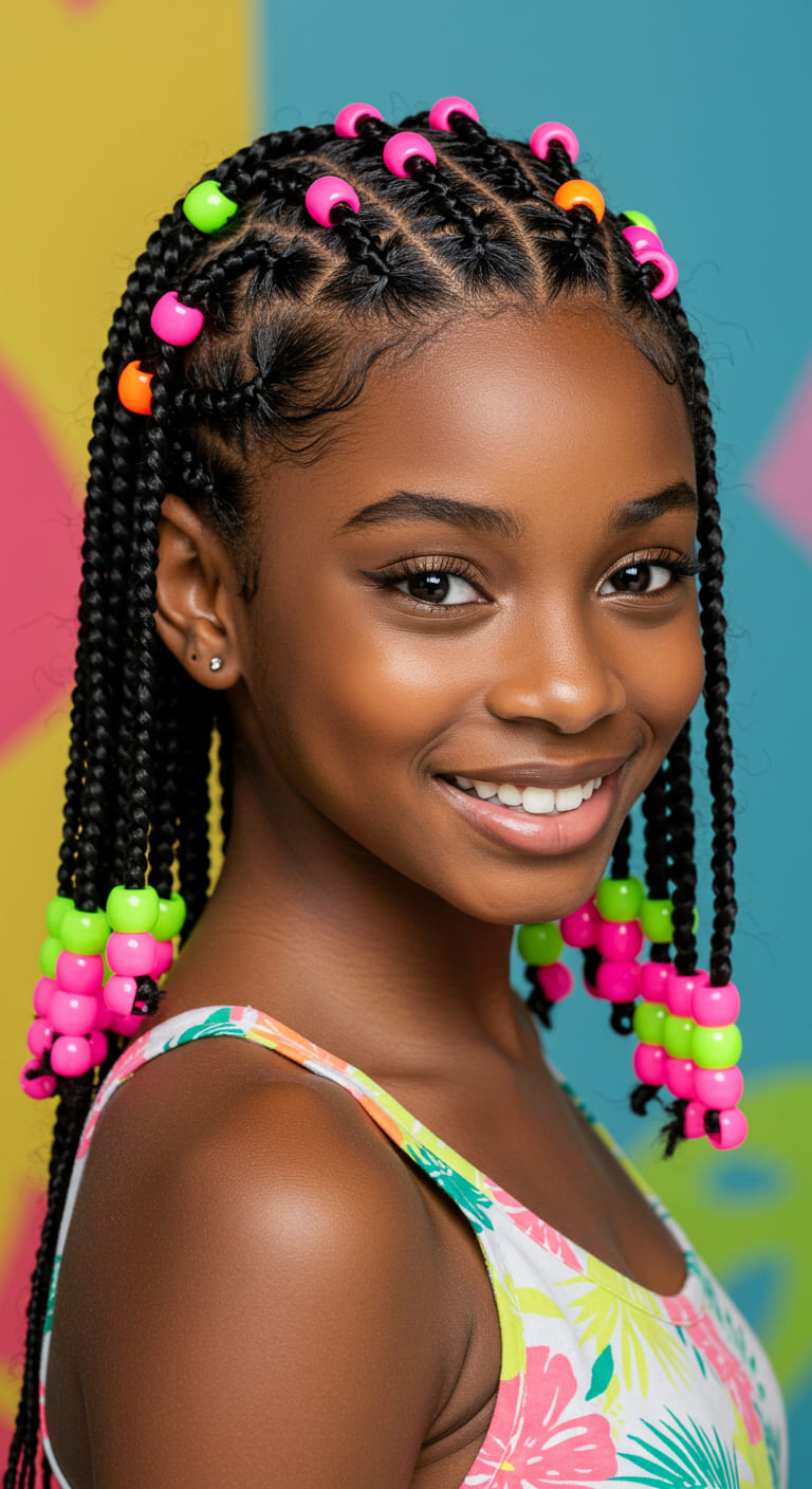 Opt for a mix of pink, yellow, and blue beads to create a playful, rainbow effect. This look is perfect for active kids because it’s low-maintenance and long-lasting.