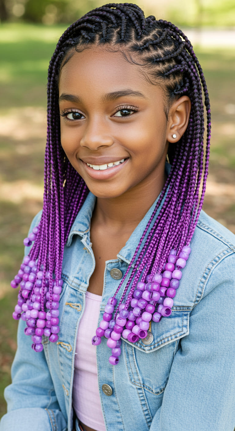 Feed-in braids offer a natural, seamless look that pairs beautifully with ombre beads that shift from light to dark.