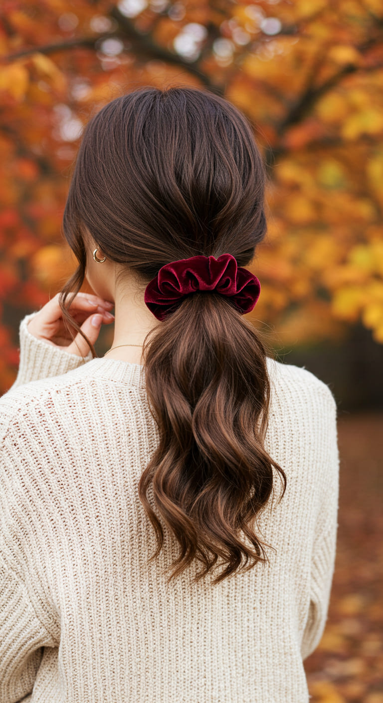 Add a velvet scrunchie or ribbon in a warm fall shade for extra flair. It’s ideal for both casual and work settings.
