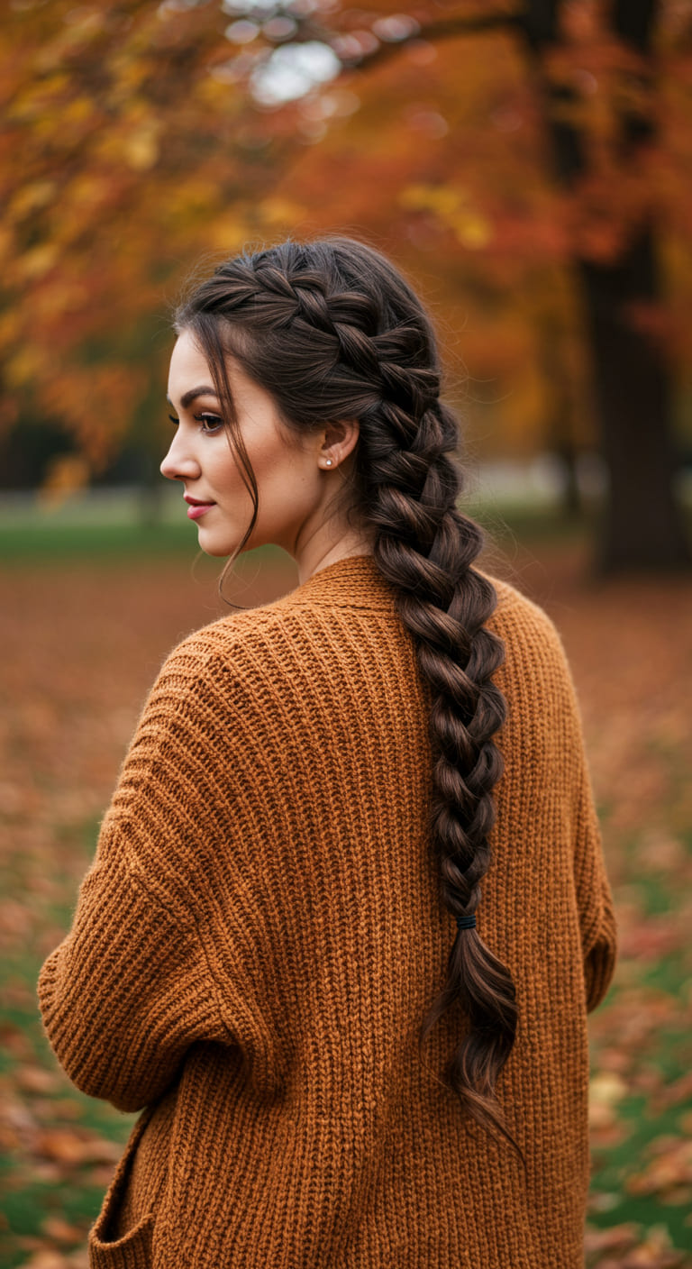 This boho-inspired braid is ideal for long hair and adds intricate detail without much effort. Wear it over one shoulder with a chunky sweater for ultimate autumn vibes.
