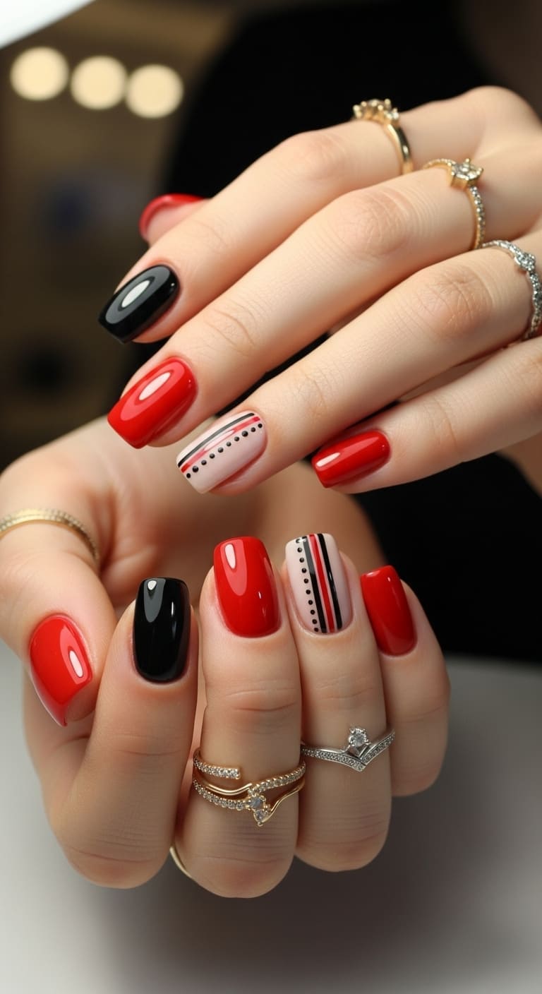 From classic glossy finishes to unexpected twists on the traditional red mani, there’s something here for every mood and style.