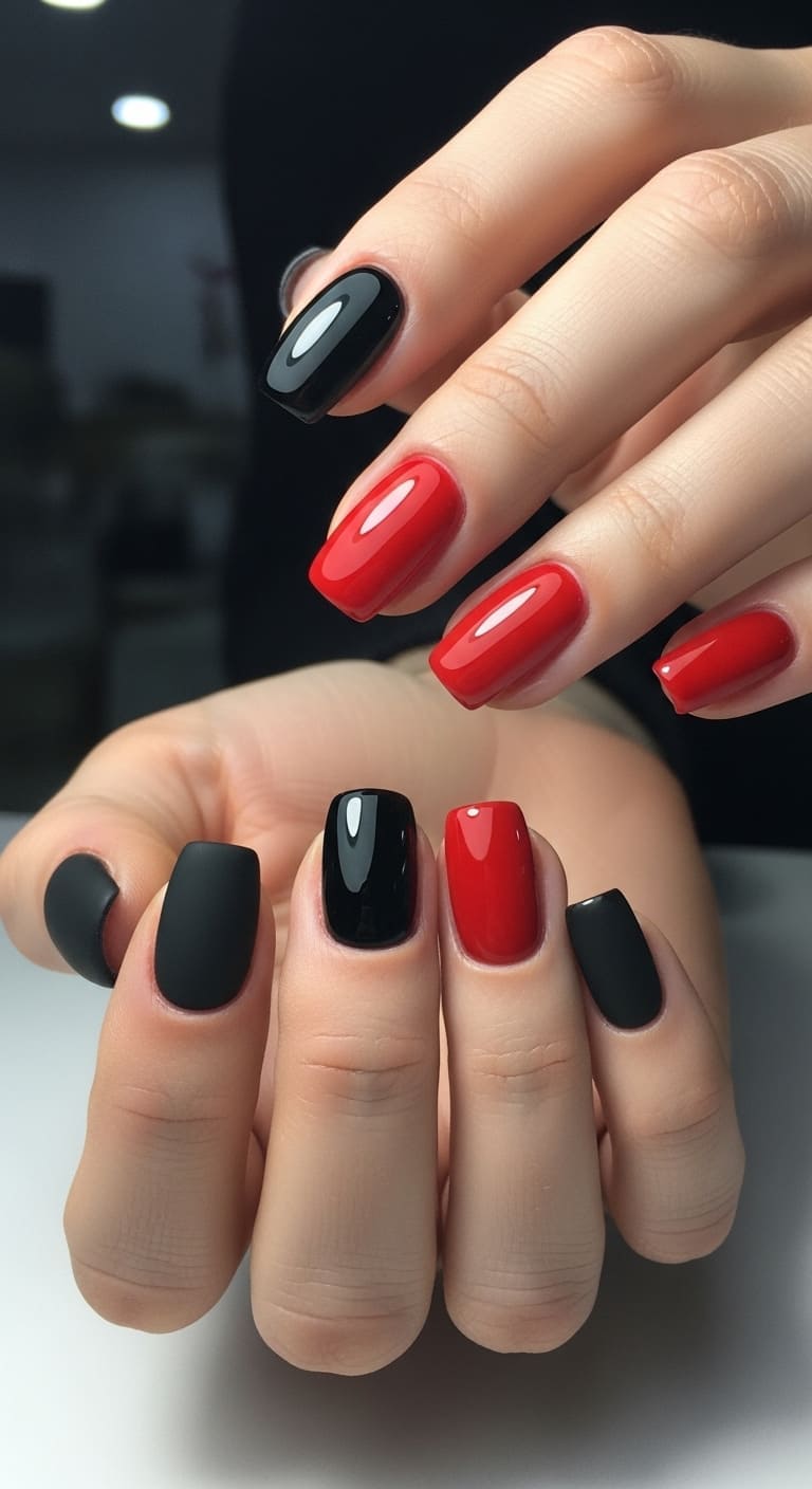 You can go all matte with just one or two glossy accent nails, create glossy geometric patterns on a matte base, or even add glossy French tips over matte red for an editorial-worthy look.