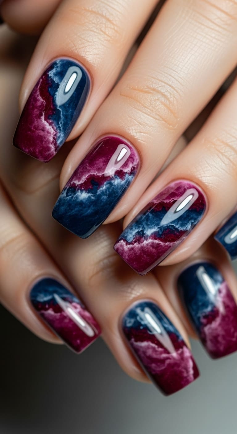 Stick with deeper, richer tones—think burgundy red and navy blue—to keep the marble effect looking elegant rather than chaotic.