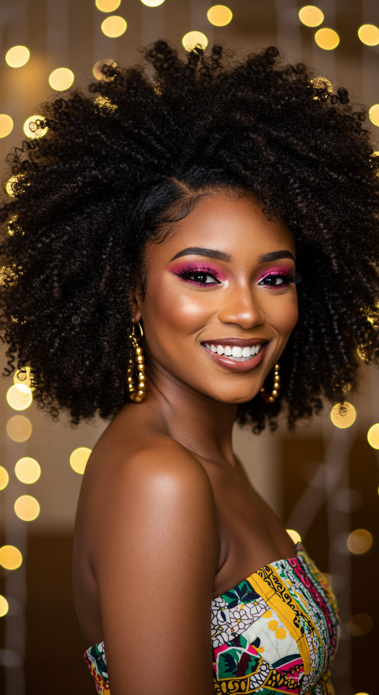 Show off your natural beauty with a fluffy afro shaped with a dramatic side part. This look is bold, empowering, and uniquely you—perfect for making a statement at homecoming.