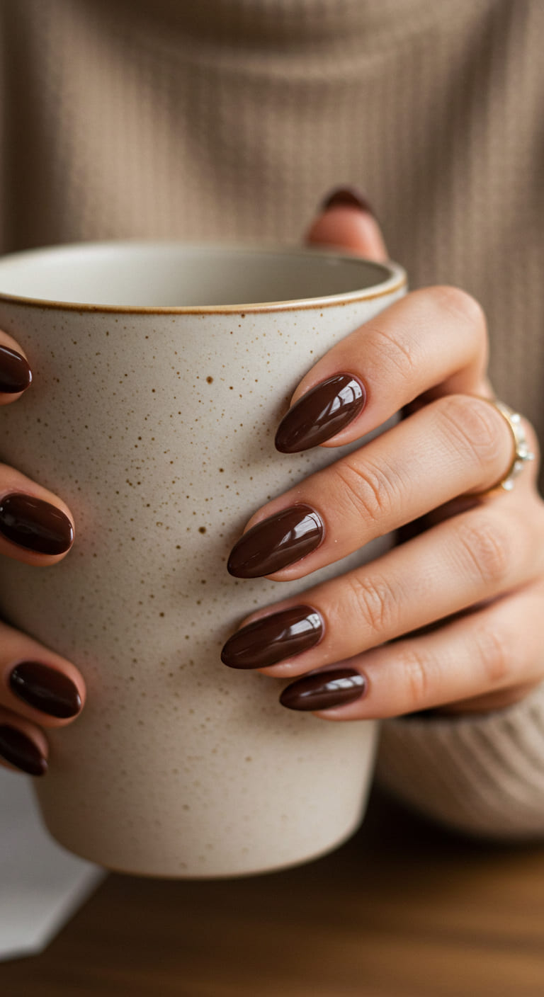 Think rich chocolate brown with a high-shine finish that looks almost edible. This glossy look screams sophistication and pairs perfectly with both casual coffee dates and evening dinners.