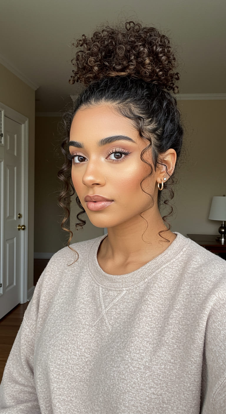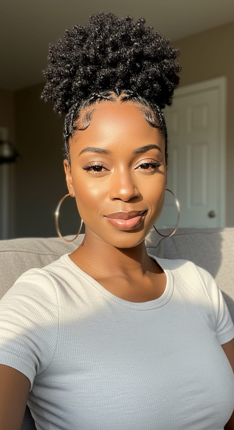 Leave the rest of your curls, waves, or straight strands to flow freely. It’s great for adding height and style while still letting your natural texture shine.