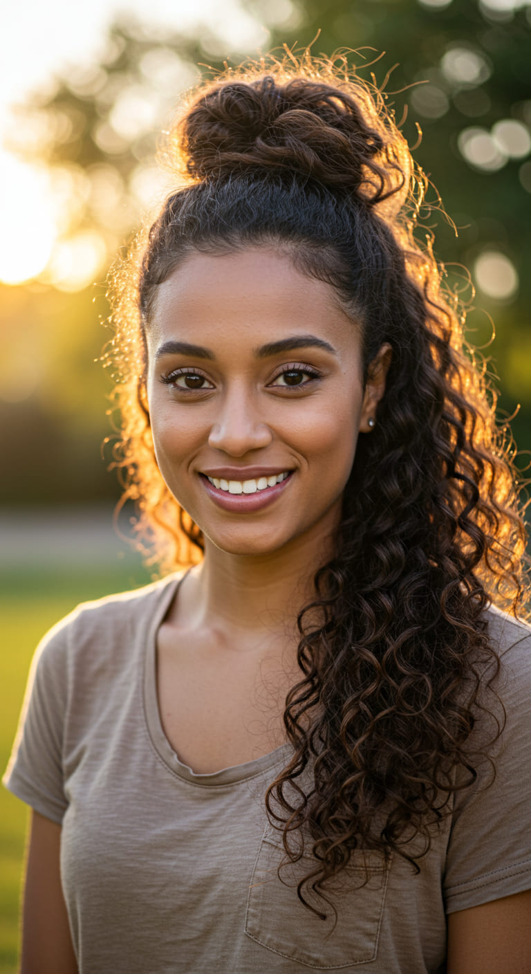 For curly or textured hair, leave out a few coils around the front for a soft, natural look. It’s perfect for moms on the go or anyone who wants effortless chic in under two minutes.