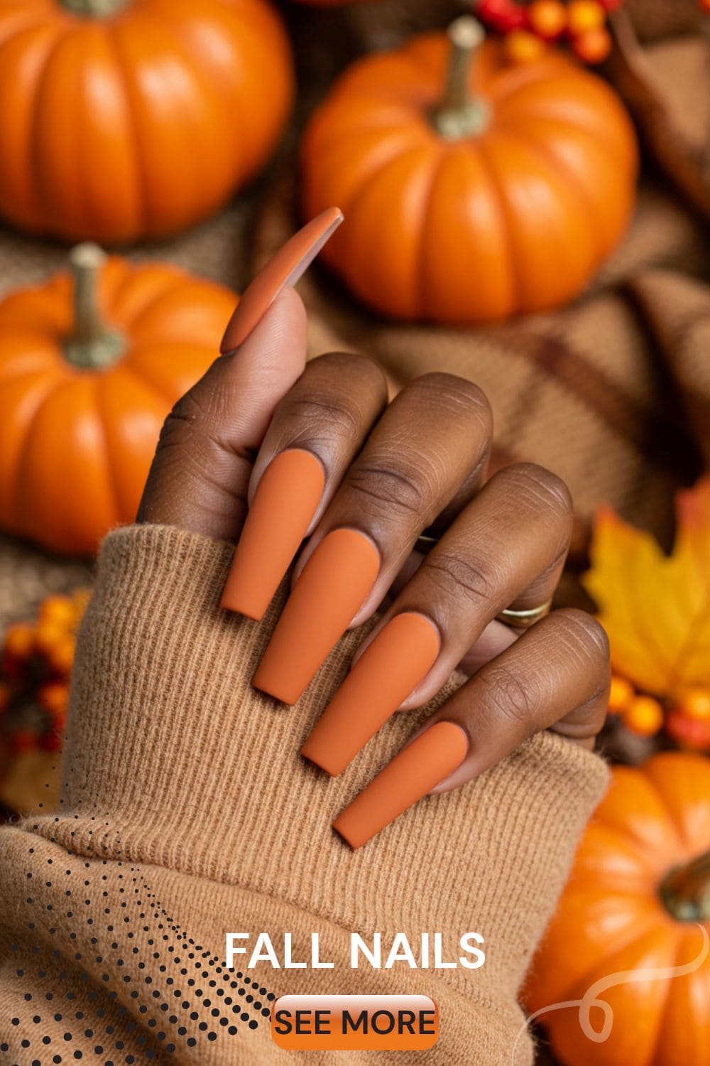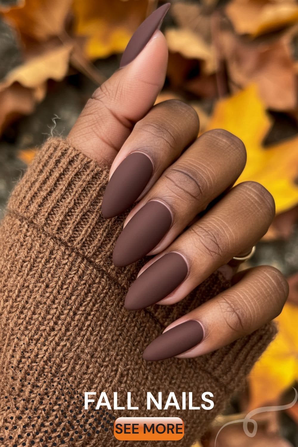 Nothing says fall like warm cocoa tones. Matte chocolate nails give an effortlessly sophisticated vibe that pairs perfectly with cozy sweaters and oversized scarves.