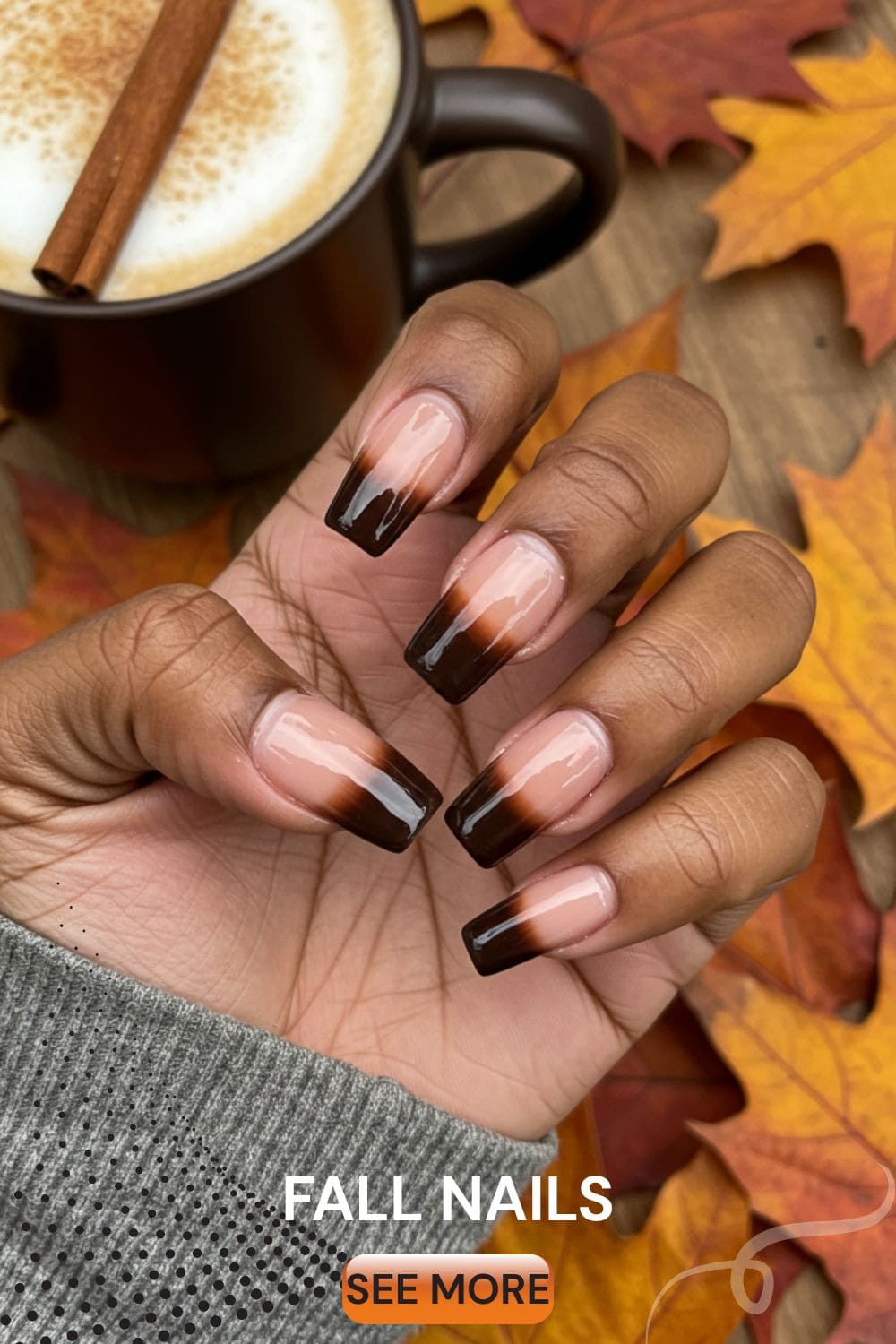 Ombre nails blend multiple shades seamlessly โ and a gradient of warm mocha, caramel, and nude creates a delicious latte-inspired look.