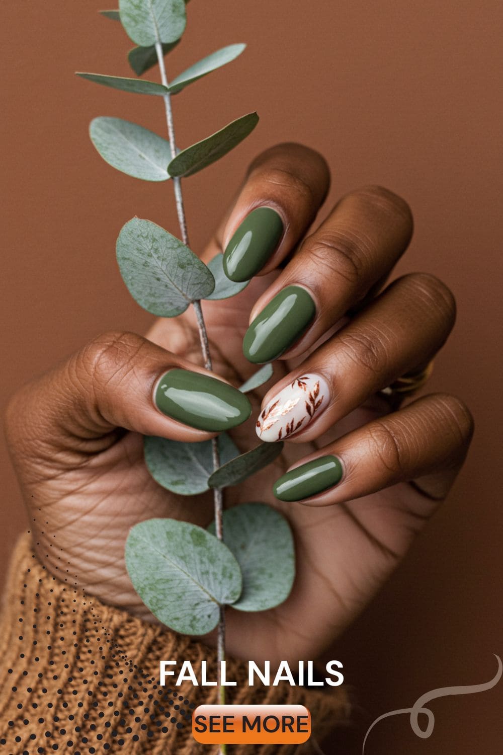 Olive green is an underrated gem in fall nail colors. Add delicate leafy designs in copper or white to bring in those autumn vibes.