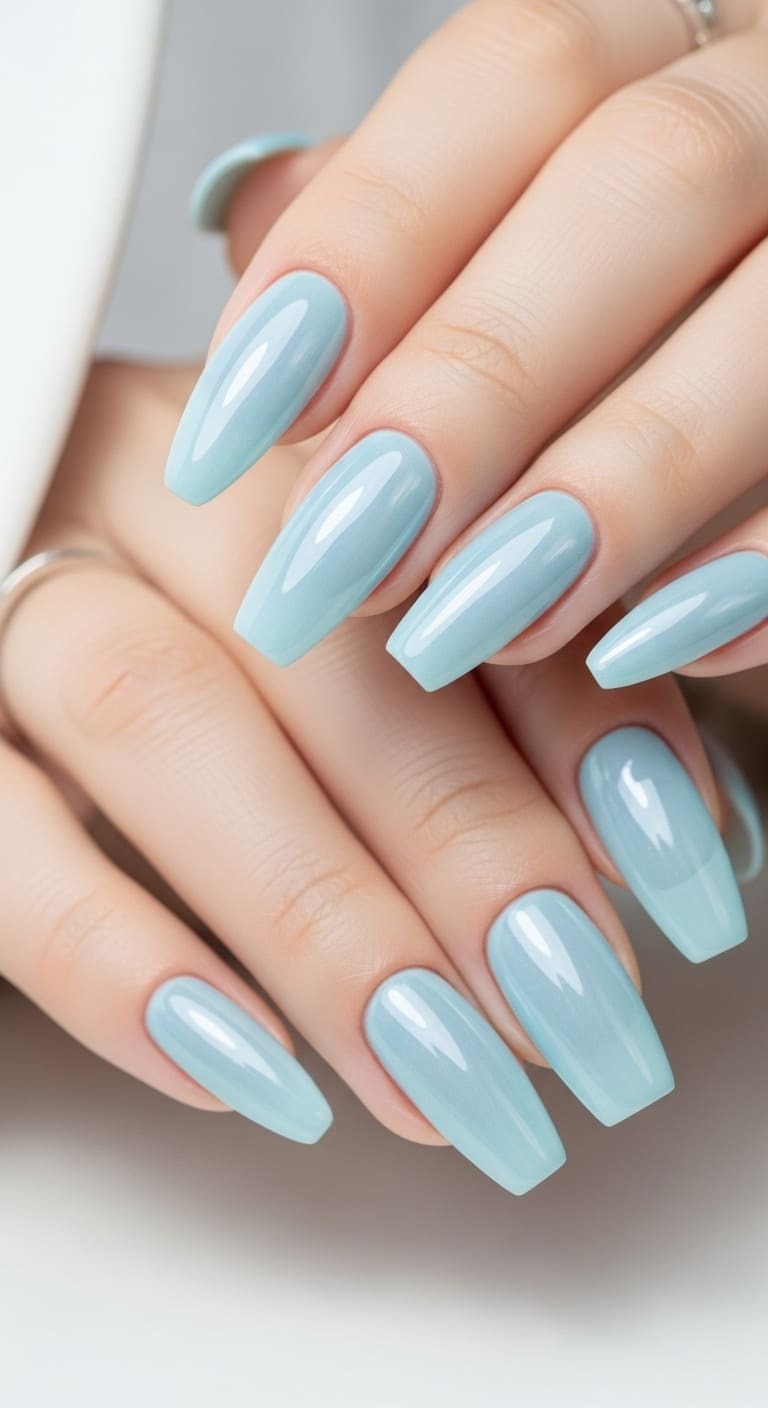Chrome is still going strong in 2025, but this year it’s all about subtle sophistication. Baby blue chrome French tips strike the perfect balance between futuristic and feminine.