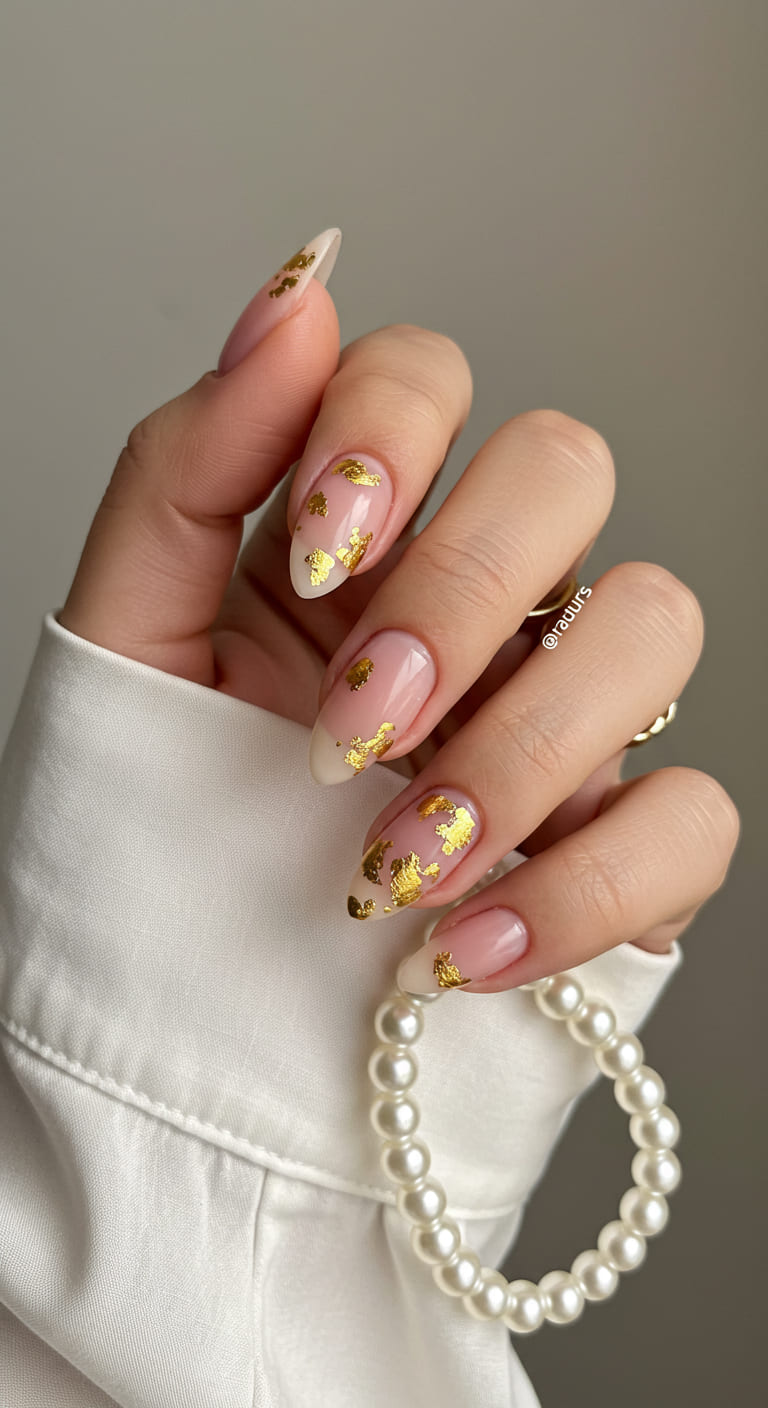 Gold foil adds instant glam to any mani, especially when paired with a soft pink or nude base. It’s effortlessly elegant and very on-trend for this year.