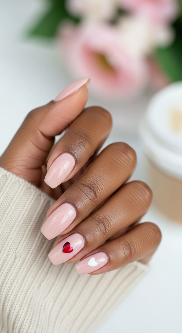 Sometimes less is more. A nude manicure with a single tiny heart (usually on the ring finger) is sweet, subtle, and totally Instagram-worthy.