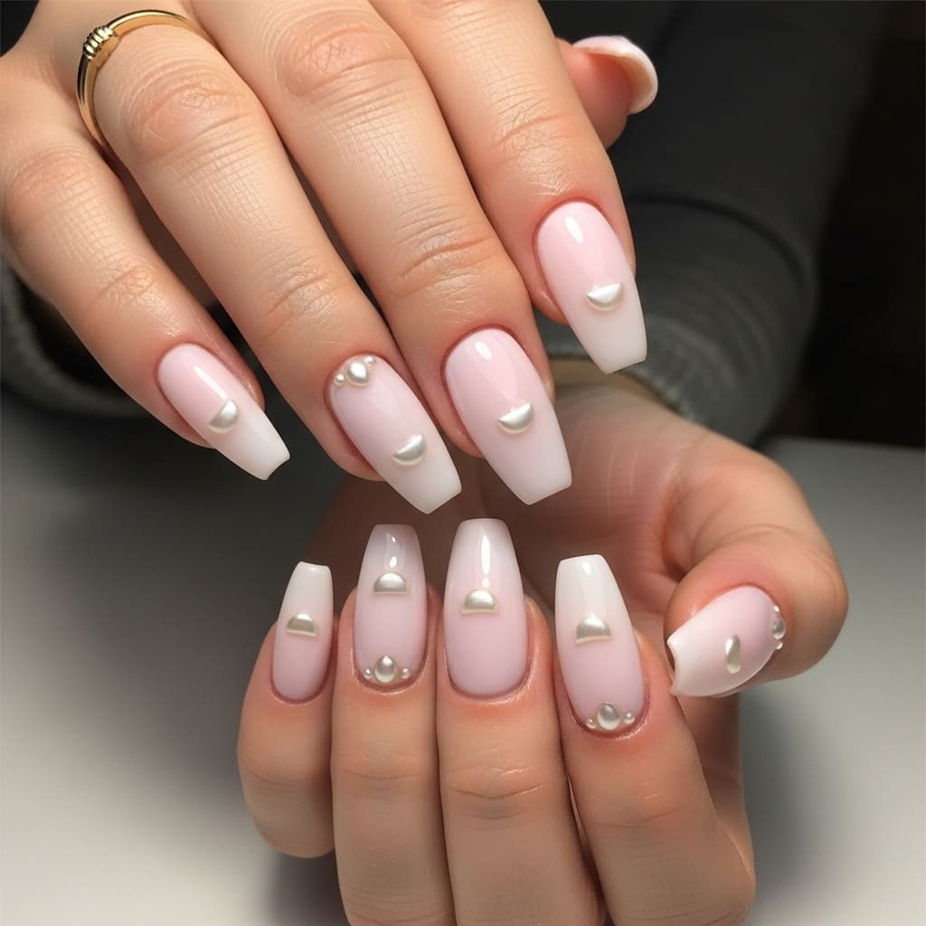 Pearls are having a moment—not just in accessories, but on nails too. Tiny half-pearls add texture and elegance to a plain base like soft pink or ivory.